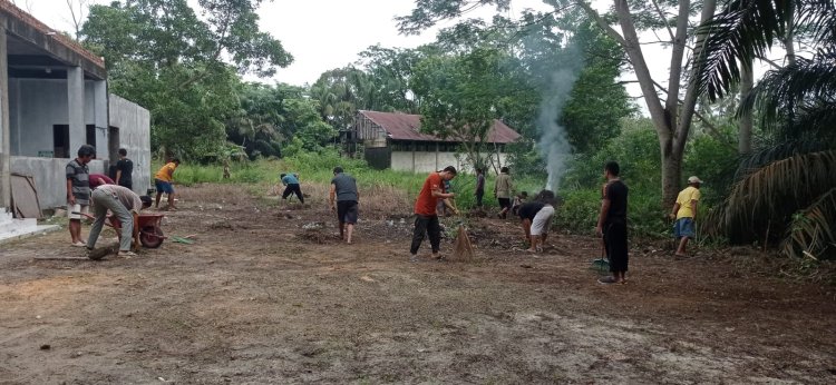 Foto dari Panitia: Suasana Gotong Royong Membersihkan Pekarangan Masjid Al-Amin Bagian Belakang